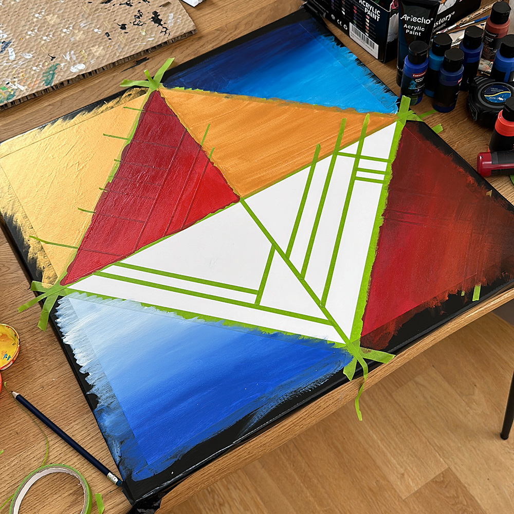 Originally from a small village in southwest Germany, I now live in Vienna. My journey into art restarted recently when I rediscovered my passion at an afterparty, where materials were freely available to experiment with. Since then, black and gold leaf have become my primary colors, complemented by vibrant accents that add depth to each piece.
