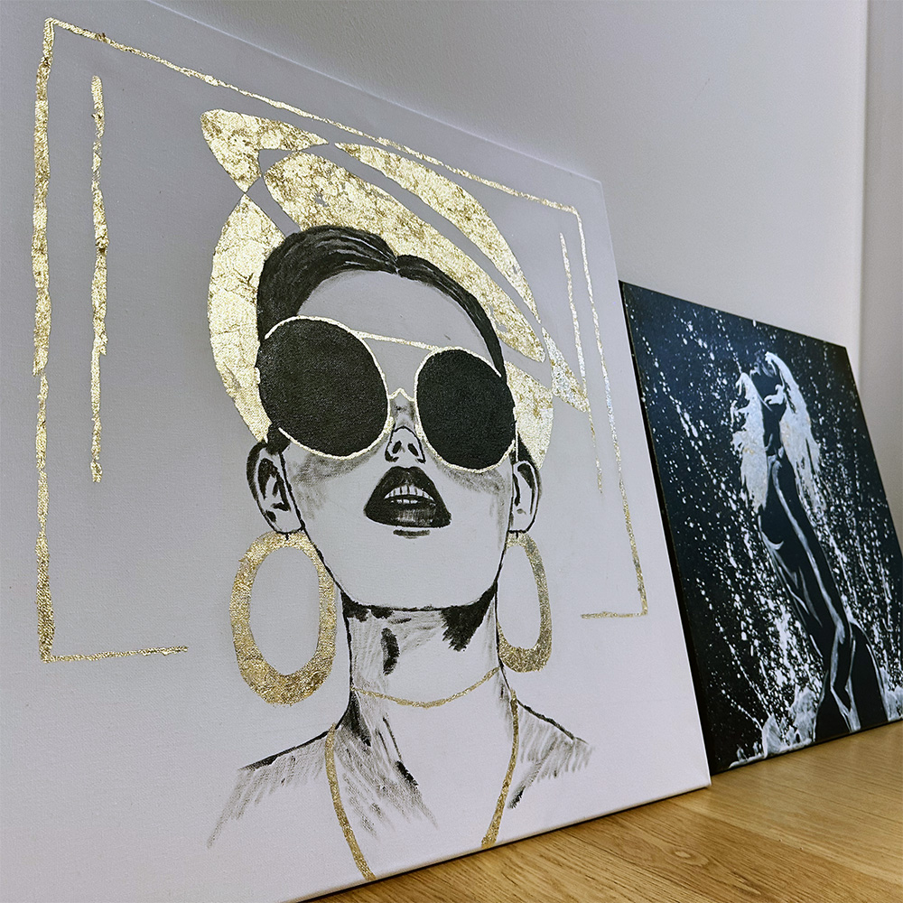 From the depth of black layers to the gleam of gold leaf, each piece embodies a blend of technique and unpredictability. I love working with thick textures and vibrant accents to evoke emotion and spark imagination.